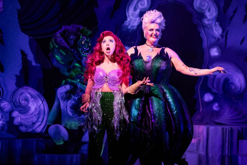 Miracle Chance’s sexually charged Ariel is deliberately everything Unfortunate’s Ursula is aiming to stand against. She’s morally questionable and hilariously single-minded in her pursuit of Prince Eric. While Ursula, in her own way, champions self-love, empowerment, and unapologetic individuality, Ariel’s goal is to mould herself around a deeply unimpressive ‘straight boy’ archetype.