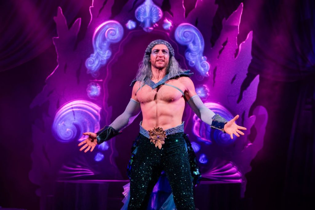 And, speaking of chemistry, James Spencer’s King Neptune (Triton’s father) is a gloriously unhinged addition to the show. Camp, flamboyant, and wildly inappropriate, Neptune arrives with the kind of energy that instantly shifts the tone of the room. There’s something deeply unsettling yet undeniably hilarious about a character who is quite clearly attracted to his own son, and Spencer leans into that discomfort with complete confidence. Quick-witted lines like “your auntie was your auntie until she was your mother,” land with jaw-dropping absurdity, pushing the humour to exactly where Unfortunate thrives. It’s outrageous, intentionally wrong, and an absolute crowd-pleaser.